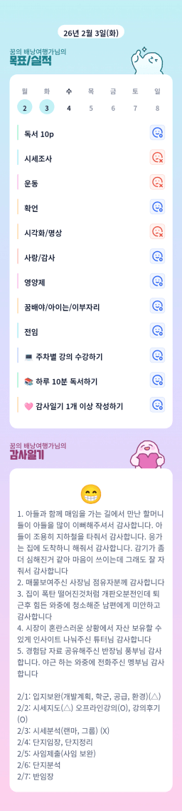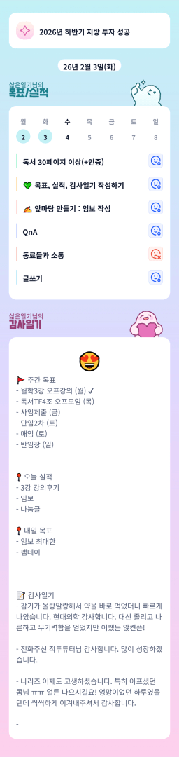 [운조 버스 타고 오랜 투자로 2어질조 학생] 2026년 2월 3일 목실감🌸