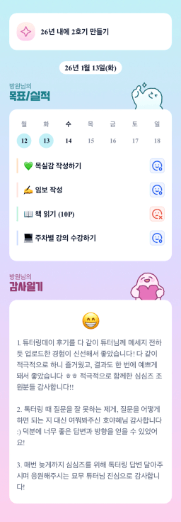 [지투실 27기 미요미우 튜터님과 2심전심 S2 방원] 1/13 목실감