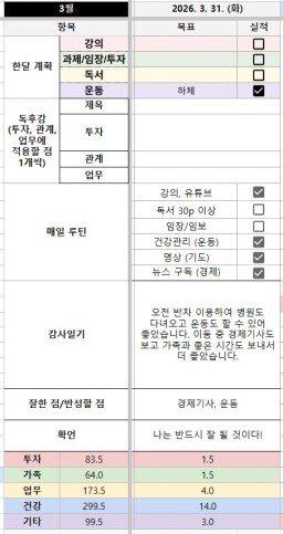 [케이목표] 3월 31일
