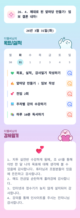 [지투28기 1어나 루틴하고 성공해야ㅈ1🏋♂️ 꽃사슴11] 3/31 목실감
