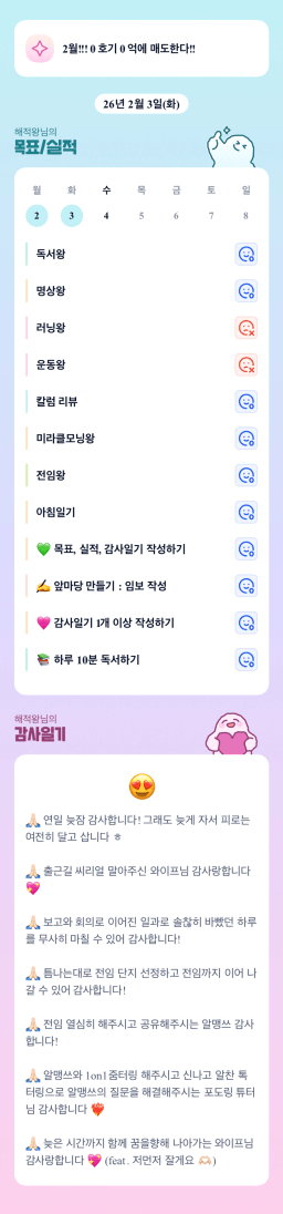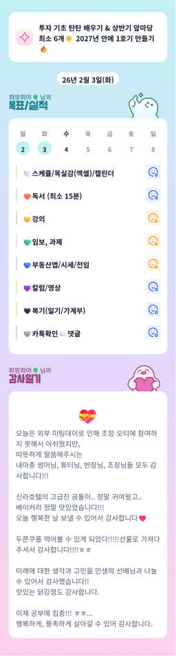02/03 목표,실적,감사일기,시간가계부 [김실력]