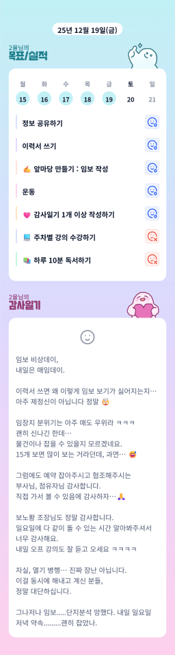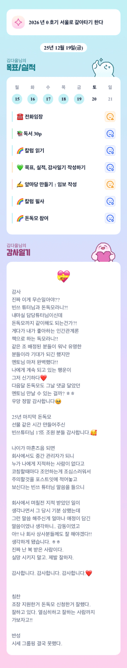 [내마실 엔젤빈쓰 튜터님과 함께하니 4주? 아니조~ 3주만에 내집마련 성공했조 김다올] 25.12.19.(금) 목실감