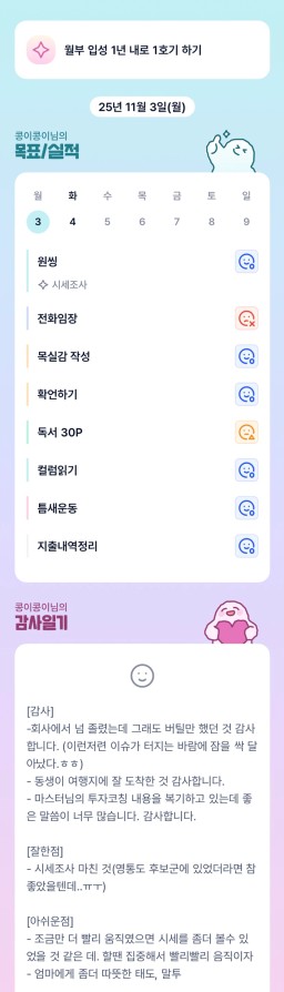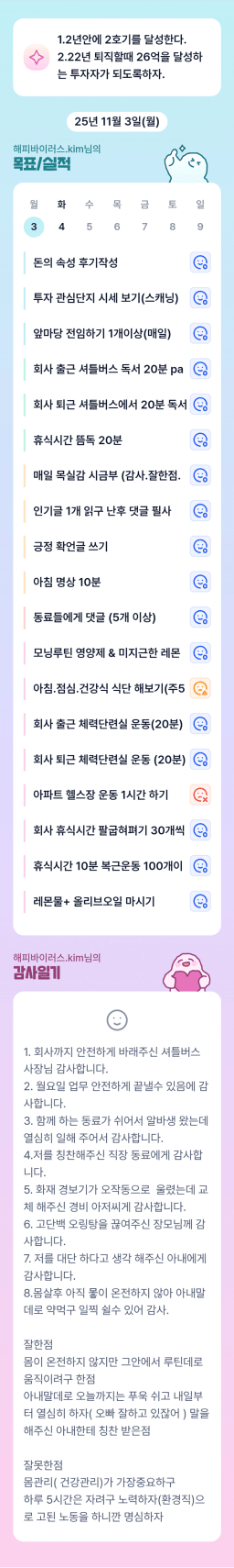 [ 해피바이러스.kim 2025.11.03일 목실감.잘한점.잘못한점]