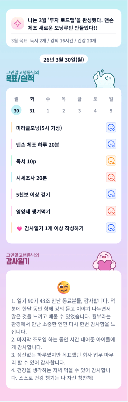[고민말고행동] 목실감 누적 211일, 연속 172일 진행중