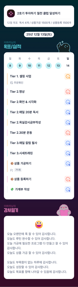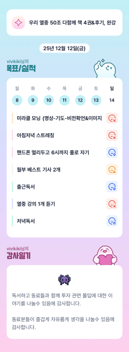 [vivikiki] 매일목실감_12월 12,13일_ 4번째달