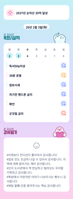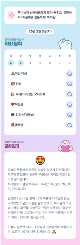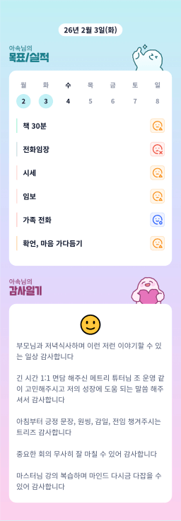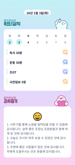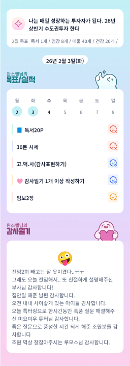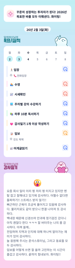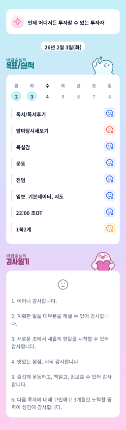 [행복한금붕이] 매일목실감 (20260203) D+284