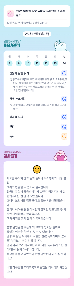 [열중 48기 2번달 독서ㄹ6 하나되 조_별을향해쏴라]12/13 매일목실감