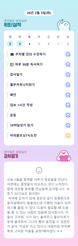 [짱이사랑맘] 2/3 목실감칭반시계부