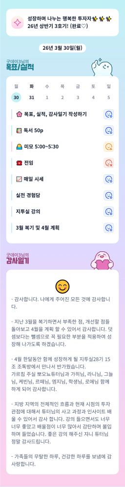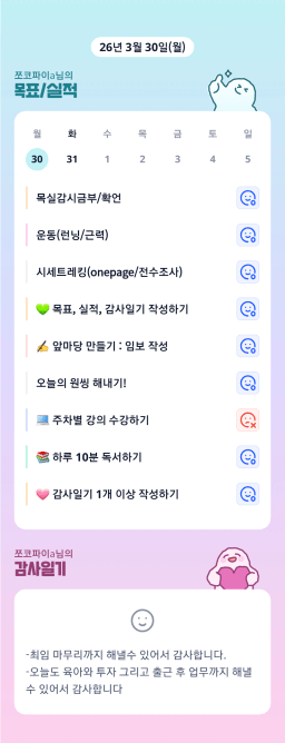 [나무해 월벗] #1430. 26.03.30 목표/실적