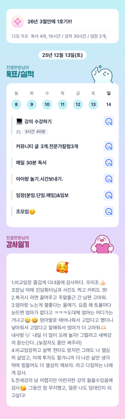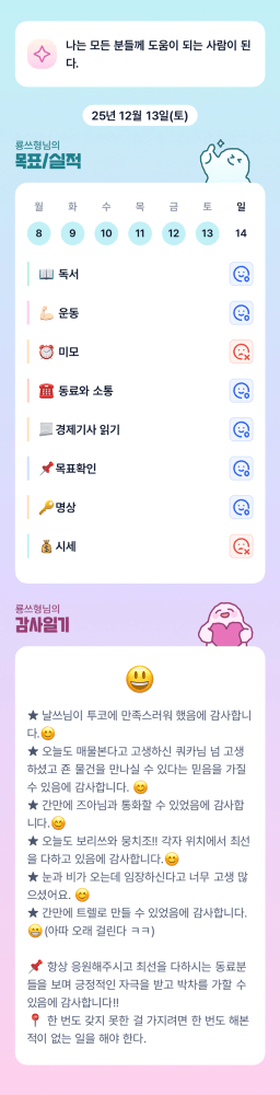목표/실적/감사일기 12/14(일) 1일차 인증 📸