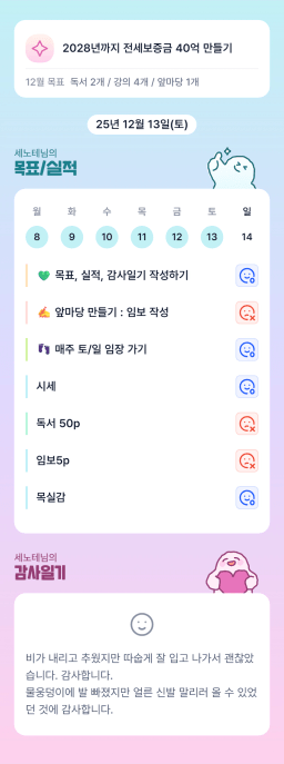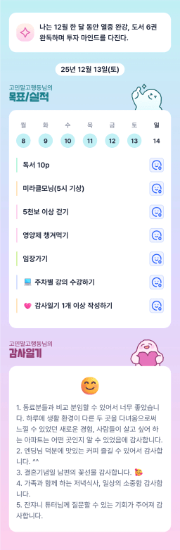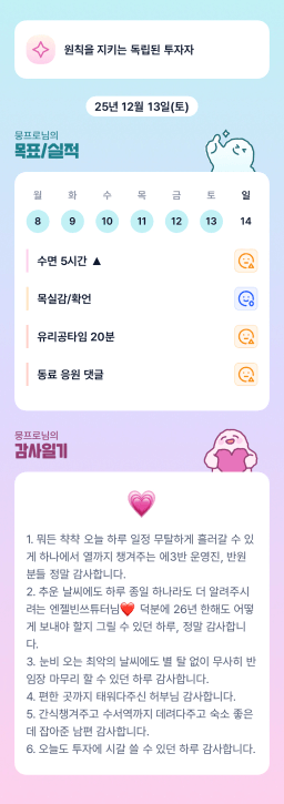 [돈뿌라이언] 목표/실적/감사일기 12/13.