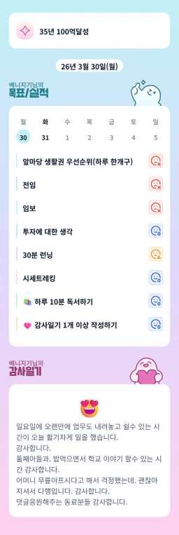3/30 나도할수있다! [징기스타] 목실감 누적 188일, 연속 89일 진행중