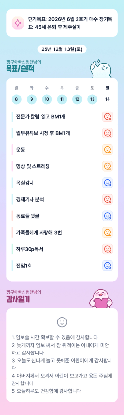 [돈뿌라이언] 목표/실적/감사일기 12/13.