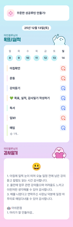 목표/실적/감사일기 12/14(일) 1일차 인증 📸