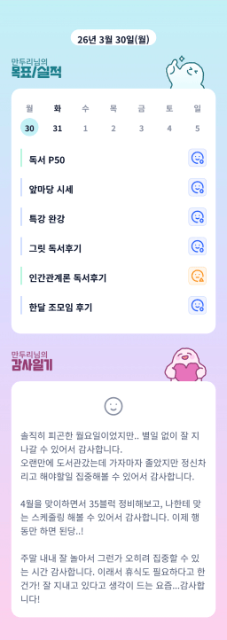 [만두리] 목실감 누적 182일, 연속 182일 진행중