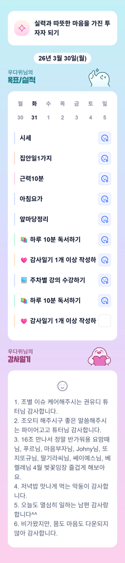[지투28기 16배 성장해서 FIRE해야조 우다위] 3월 30일 목실감
