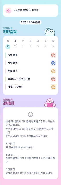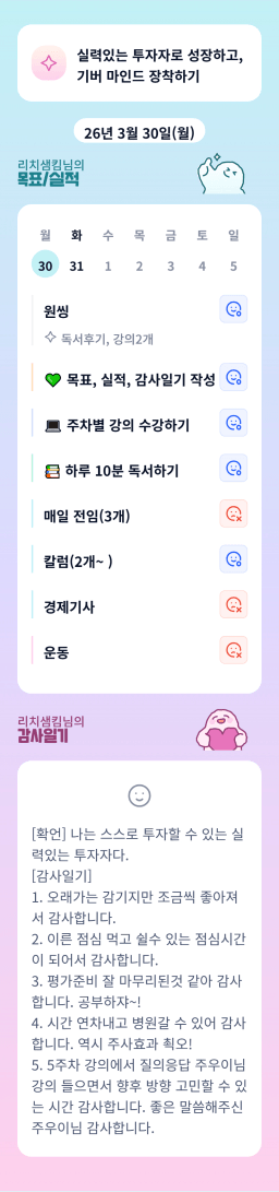 [열중 49기 2번달 투자&독서와 4랑에 빠졌조 리치샘킴] 목실감(3.30)