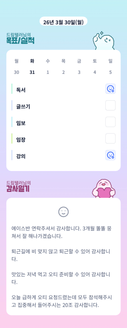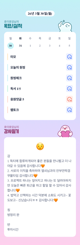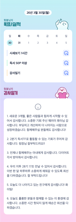 [에이스2반/독서TF 험블] 3월 30일(월) 감사일기