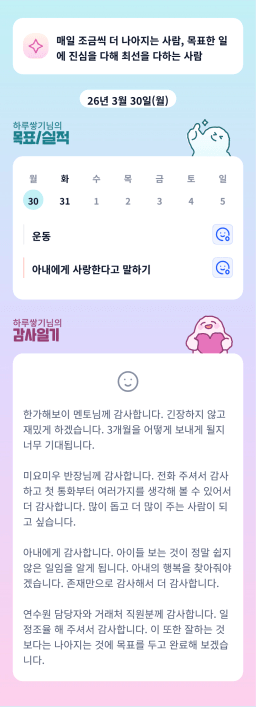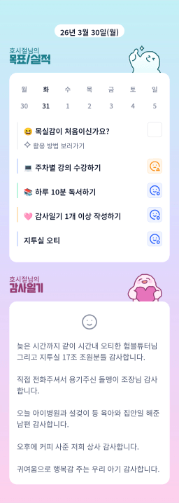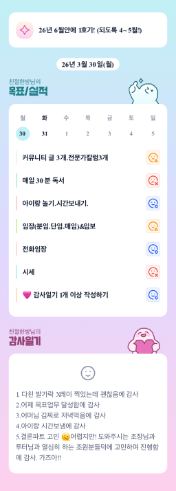 [친절한방_매일성장목실감 _행복한길 3/30] 목실감 누적 209일, 연속 204일 진행중
