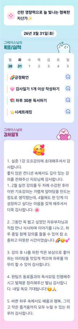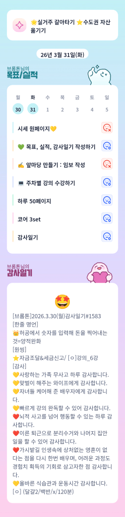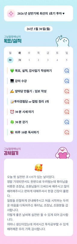 [5늘결정 10년인생역전 진담이조 경이맘] 4주차 목실감 인증