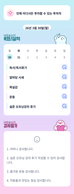 [바람숲] 2026.03.30.(월) 목실감 누적 212일, 연속 210일 진행중