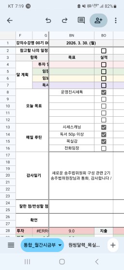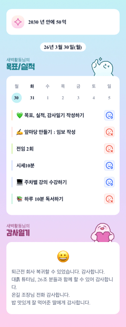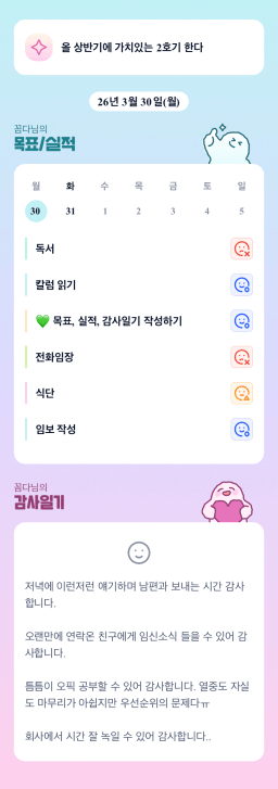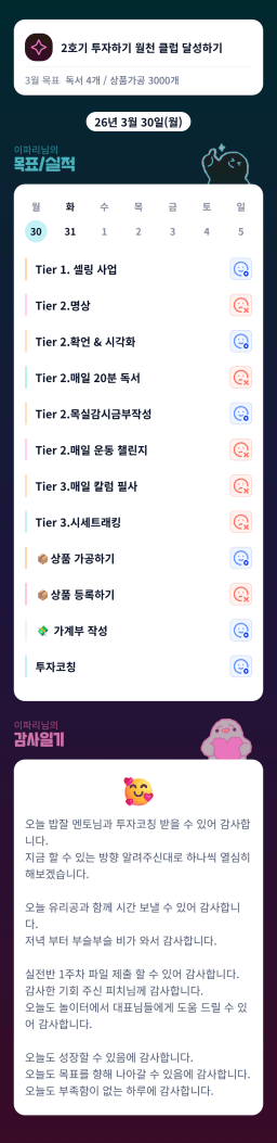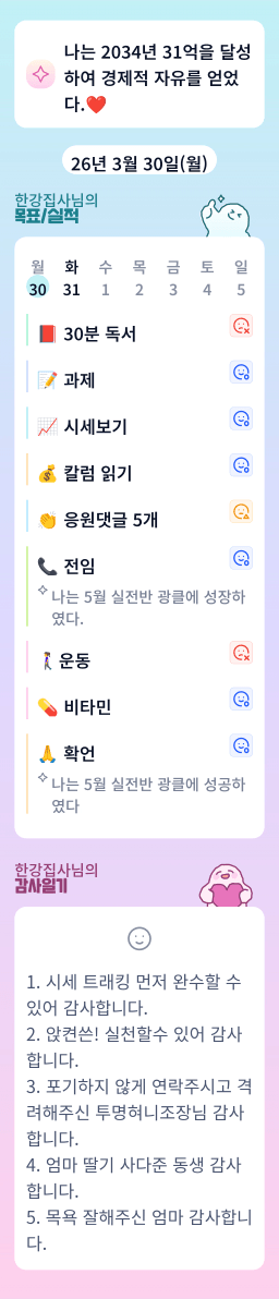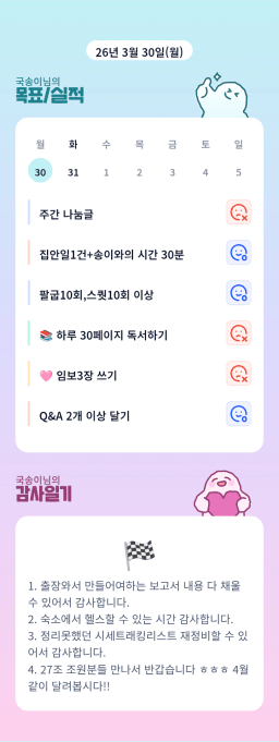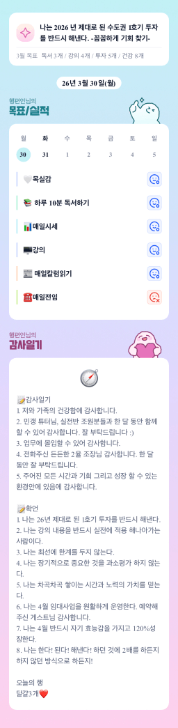 [정의] 2026년 3월 31일 목표, 실적, 감사일기