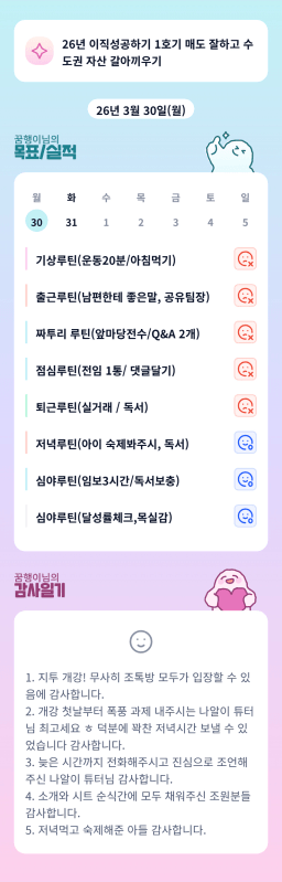 [구리 확 다(산) 쎄리바람즈👊🏻 / 열중49기 열중듣고 독서하며 오를자산투자하조 꼼다] 3/30 목실감