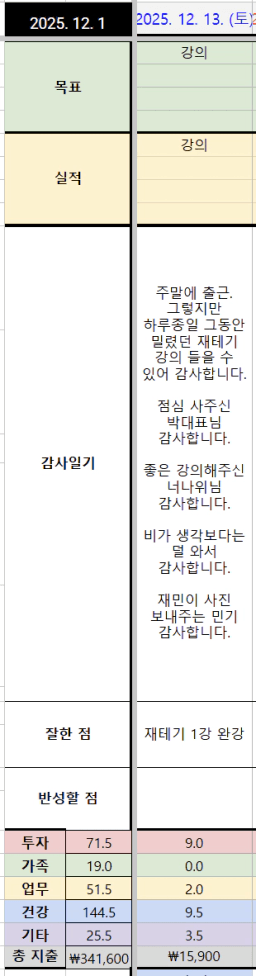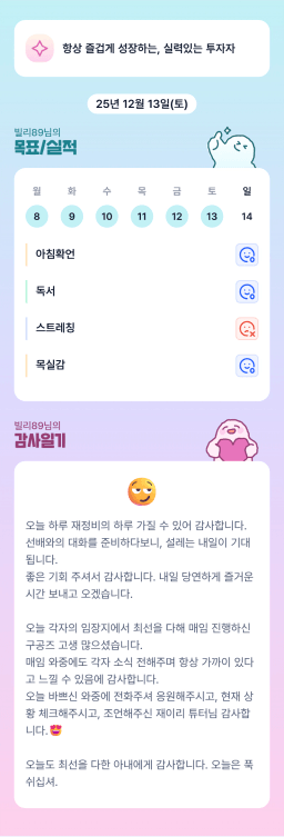 [열기89기 투자원칙대로 chilly(72)하게 안정적으로 투자하조_만보] 25.12.13 목실감