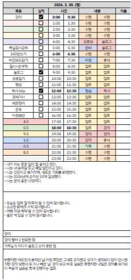 [하루를성실히] 3/30 목실감
