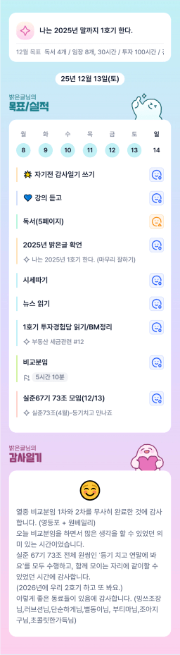 [열중 48기 아파트 4고8아 강남에 24오조 꾸준히해보자] 251213 목실감시금부