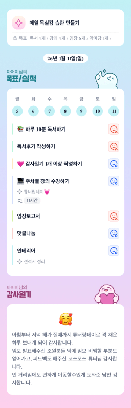 [지투실 27기 미요미우 튜터님과 2심전심 S2 꿈구] 목실감 0109(금)~0111(일)