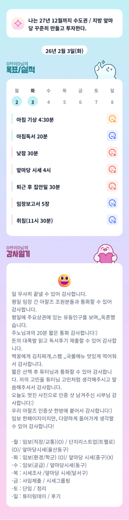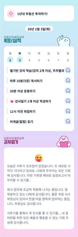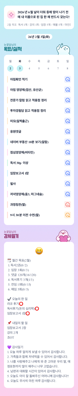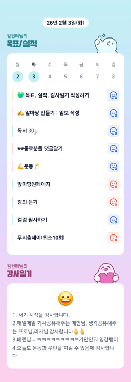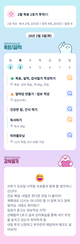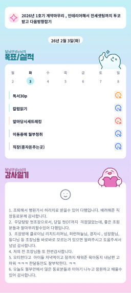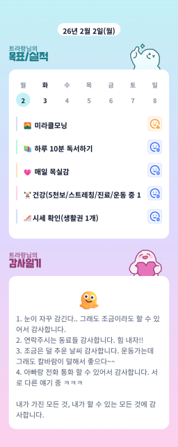 [서기30기 5늘을 바꾸고 3도 바꿀 조 하늘연두] 매일목실감 2.2~2.3