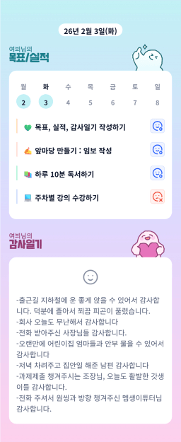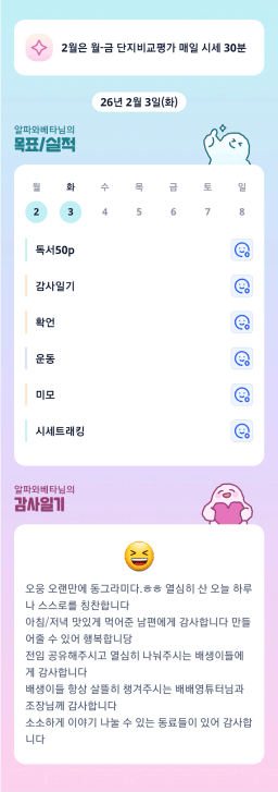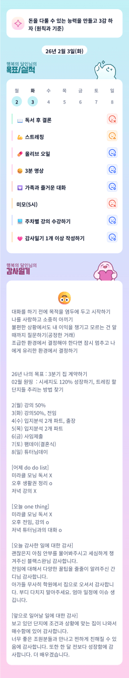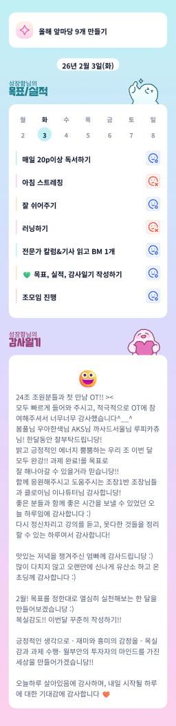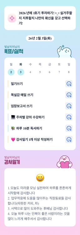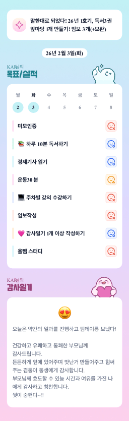 [성장함🧡] (2026.2.3.) DAY327 목표,실적,감사일기,시간가계부