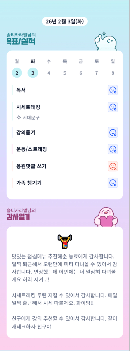 [서투기30기 9조 웨클] 매일 목실감 26/2/1~2/3
