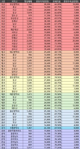 [종코치] 25년 9월 서울,수도권,광역시 평단가 및 전세가율 정리