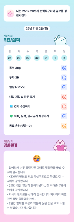 [지투기 세(3)상에~1등 투자자 다모였다! 20조 대박나조! 성장함🧡] (2025.11.03.) DAY292 목표,실적,감사일기,시간가계부