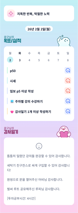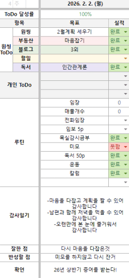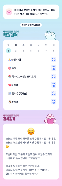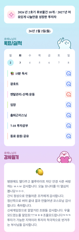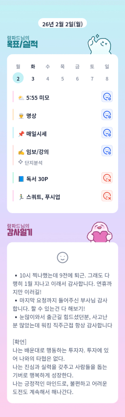 [행복한금붕이] 매일목실감 (20260202) D+283