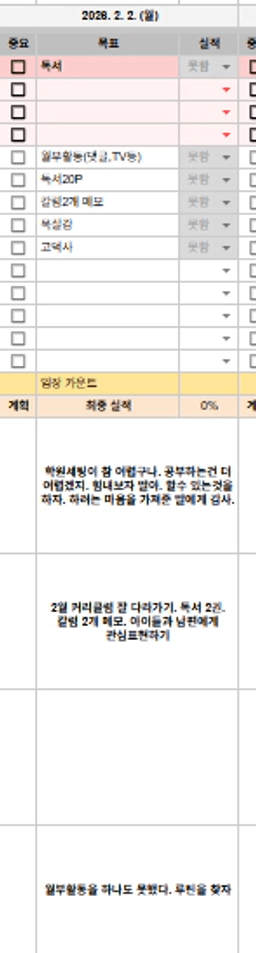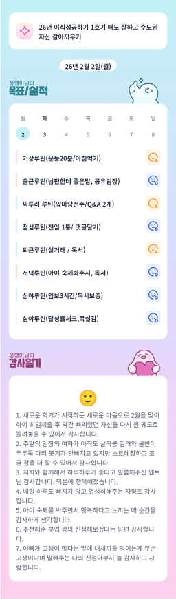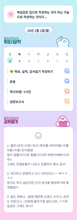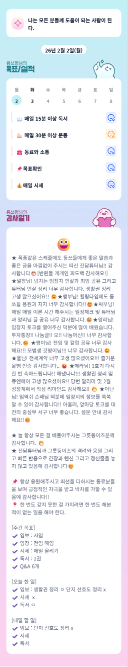 [러버블리v] 26.2.3 목표, 2.2 감사일기 + 칭반