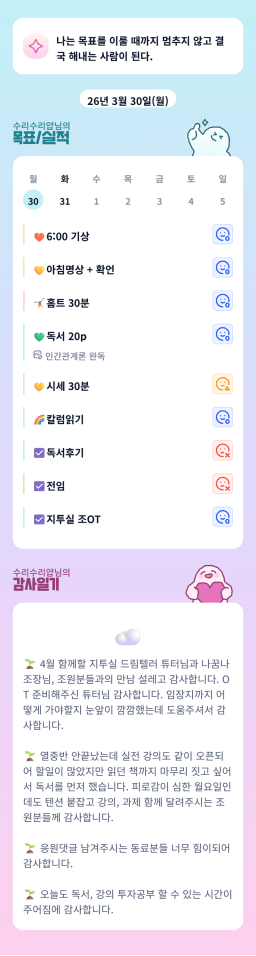 [한꾸꾸] 목실감 누적 254일, 연속 175일 진행중