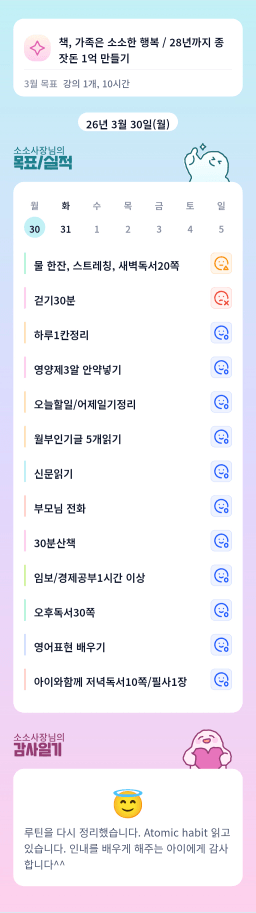 [자식부자] 목실감 누적 270일, 연속 219일 진행중