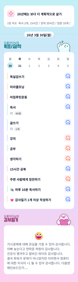 [도롱이다] 목실감 누적 277일, 연속 277일 진행중