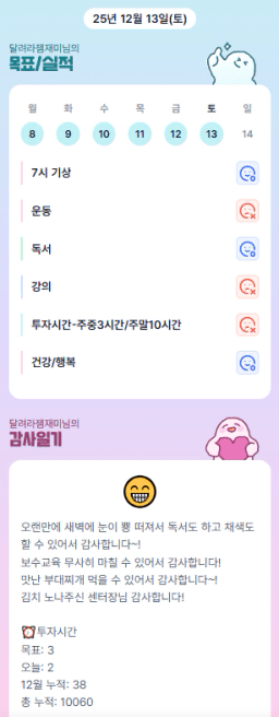 [열기89기 비전보드속 드림하우스로 24갈조 재테크햄찌] 매일목실감 12.13