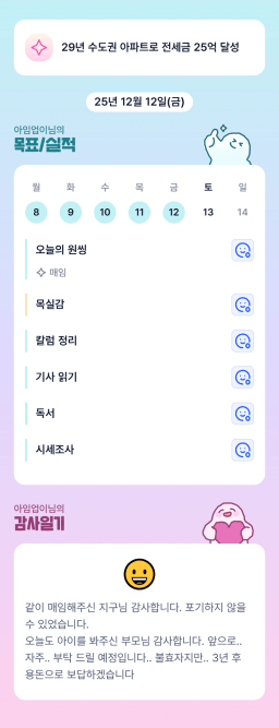 [열기 집사구 89하여 30억 달성할조 와이팅1 ] 12월 12일 목실감 과제