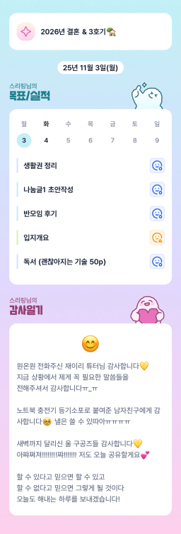 [별찌롱] 11/3 실적, 감사일기, 시간가계부 11/4 목표