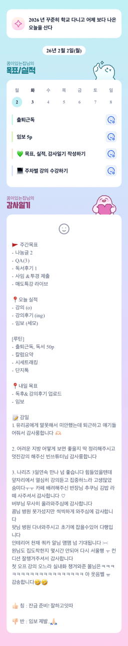 [에이스2반/독서TF 험블] 2월 2일(월) 감사일기