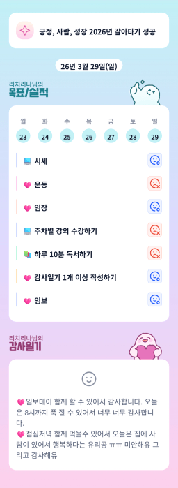 [리치리나] 목실감 누적 198일, 연속 91일 진행중