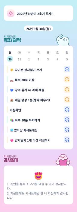 [26.03.30. 리치토] 목실감 누적 226일, 연속 185일 진행중