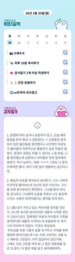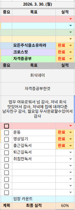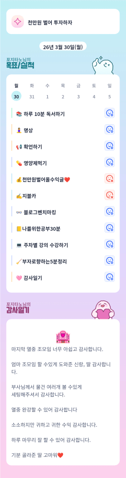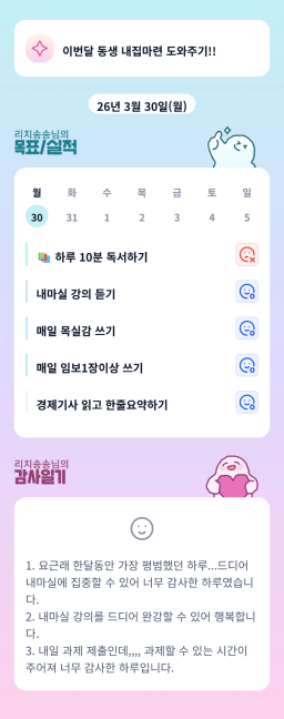 [리치송송] 목실감 누적 60일, 연속 27일 진행중(3/30)