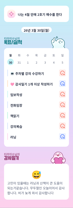 [티라미수] 목실감 누적 70일, 연속 2일 진행중
