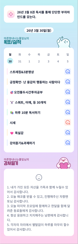 [마른향내나는풀잎] 목실감 누적 136일, 03.30